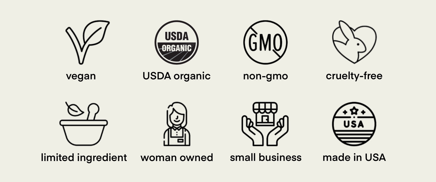 Never any Parabens, Sulfates, Phthalates, Silicones, Dyes, Artificial Fragrances or other harsh chemicals.